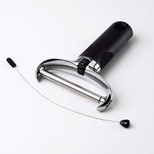 The stainless steel wire on the Wire Cheese Slicer is easy to load and tightens into place with the convenient tensioning wheel. The sturdy, die-cast zinc construction and soft, comfortable handle make it a workhorse at parties. Includes two replacement wires.