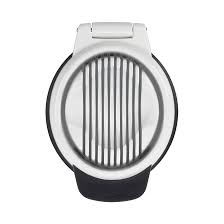 The OXO Good Grips Egg Slicer yields perfect 5 mm slices with one simple press. The holder cradles the egg in two directions, giving you the option of round or oblong slices. The raised handle is easy to open and close, and the non-slip base provides a comfortable grip while slicing over bowls or plates.