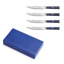 Comes with (4) KITA Series Fine-Edge Steak Knives and a blue ash wood knife storage box.